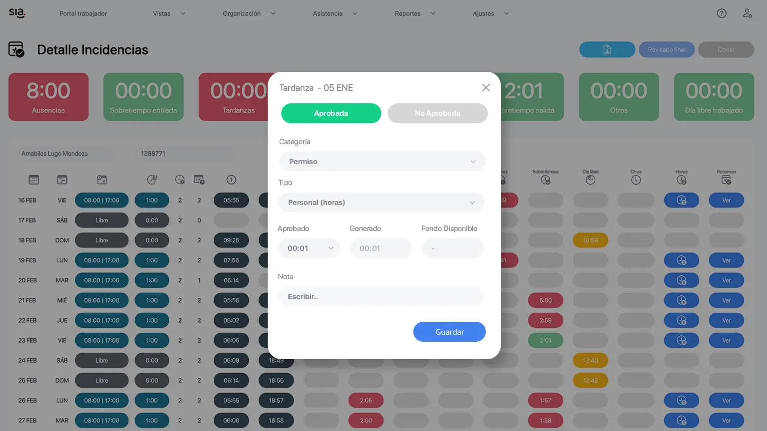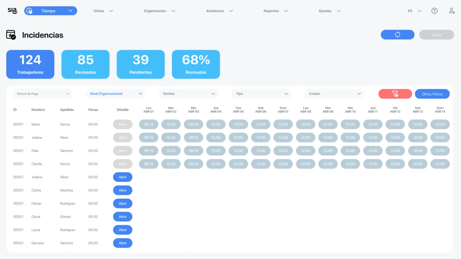 Usa vistas para visualizar asistencia e incidencias y tomar decisiones rápidas.